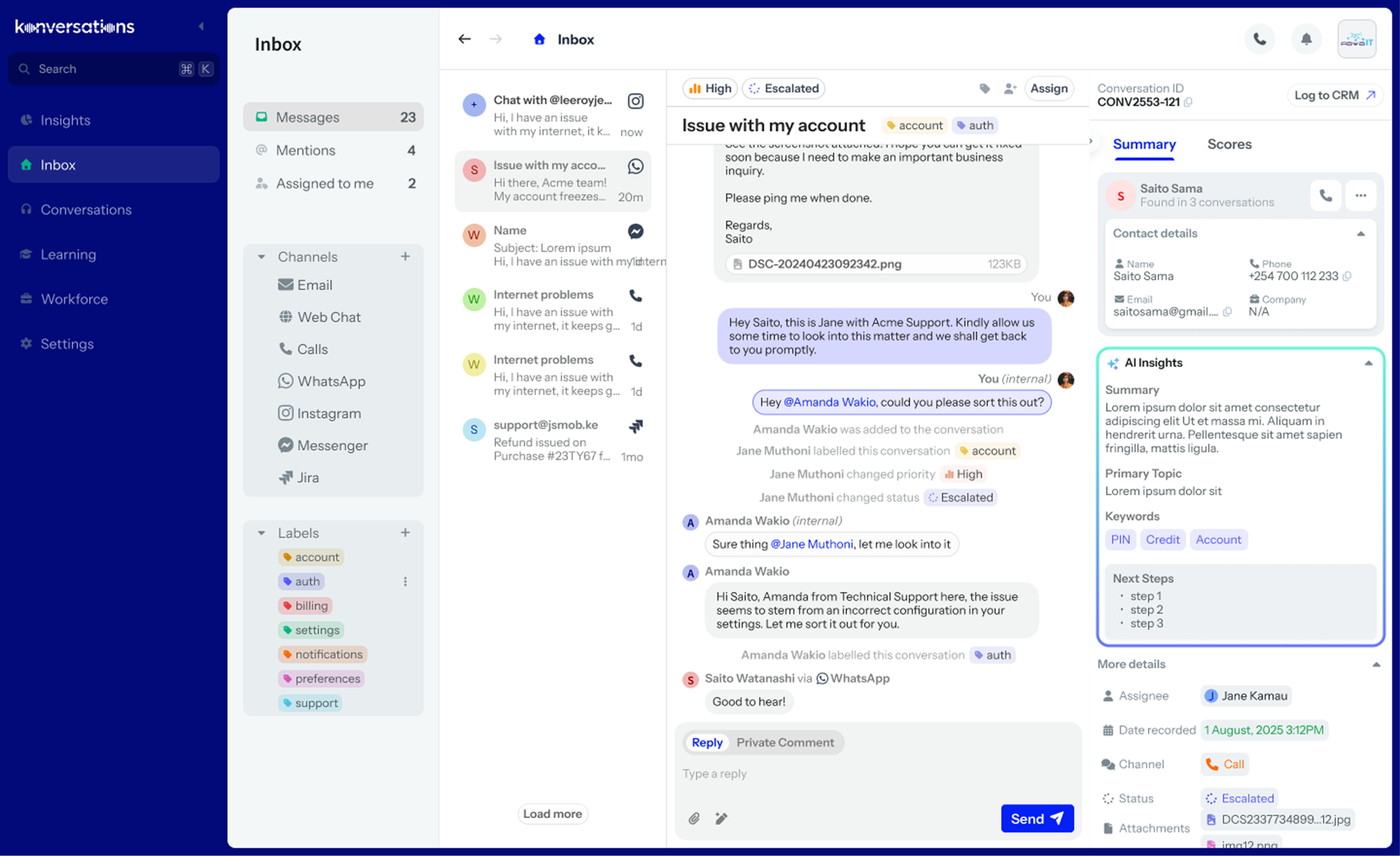 - All conversations from WhatsApp, Instagram, Jira, and more in one place