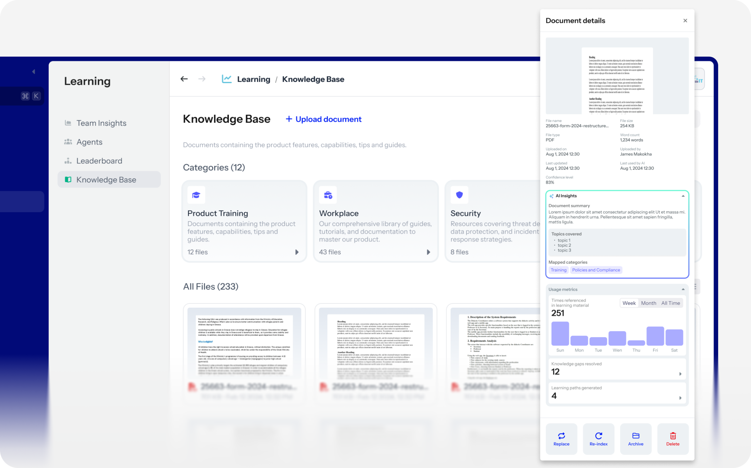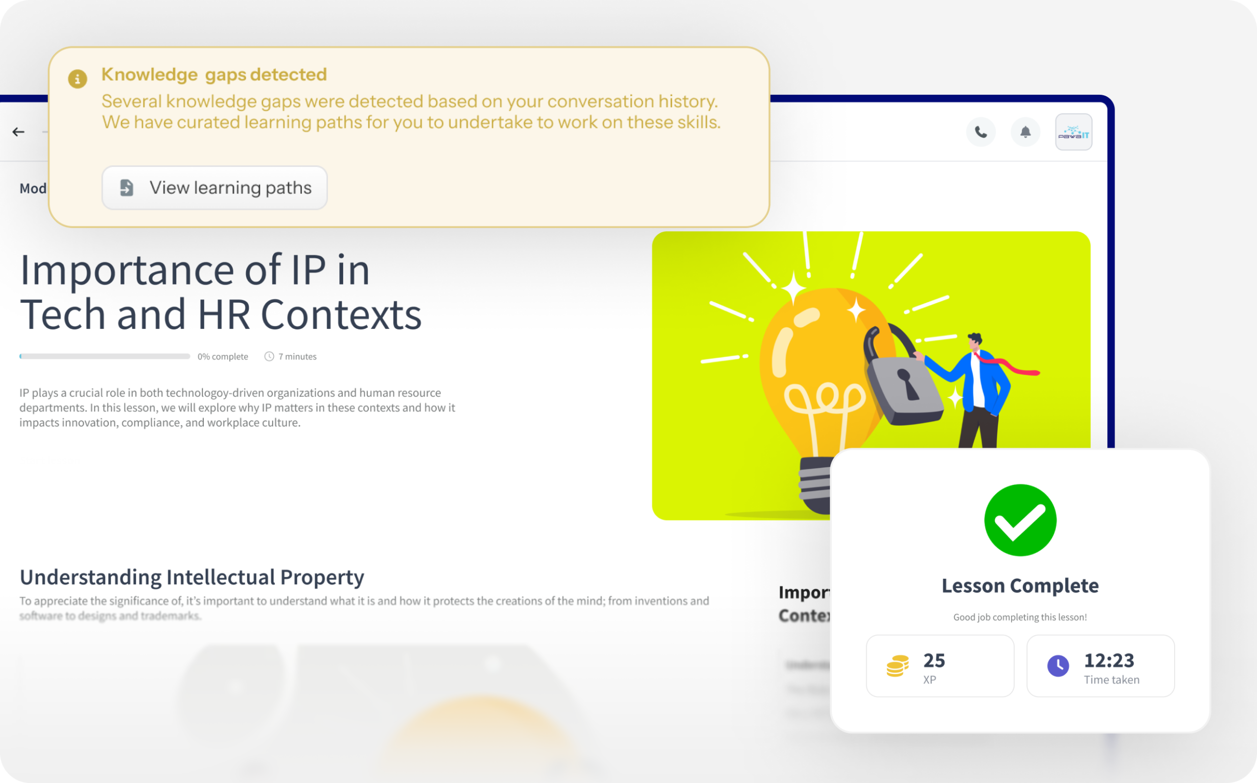 - AI automatically generates summaries and integrates content into learning paths