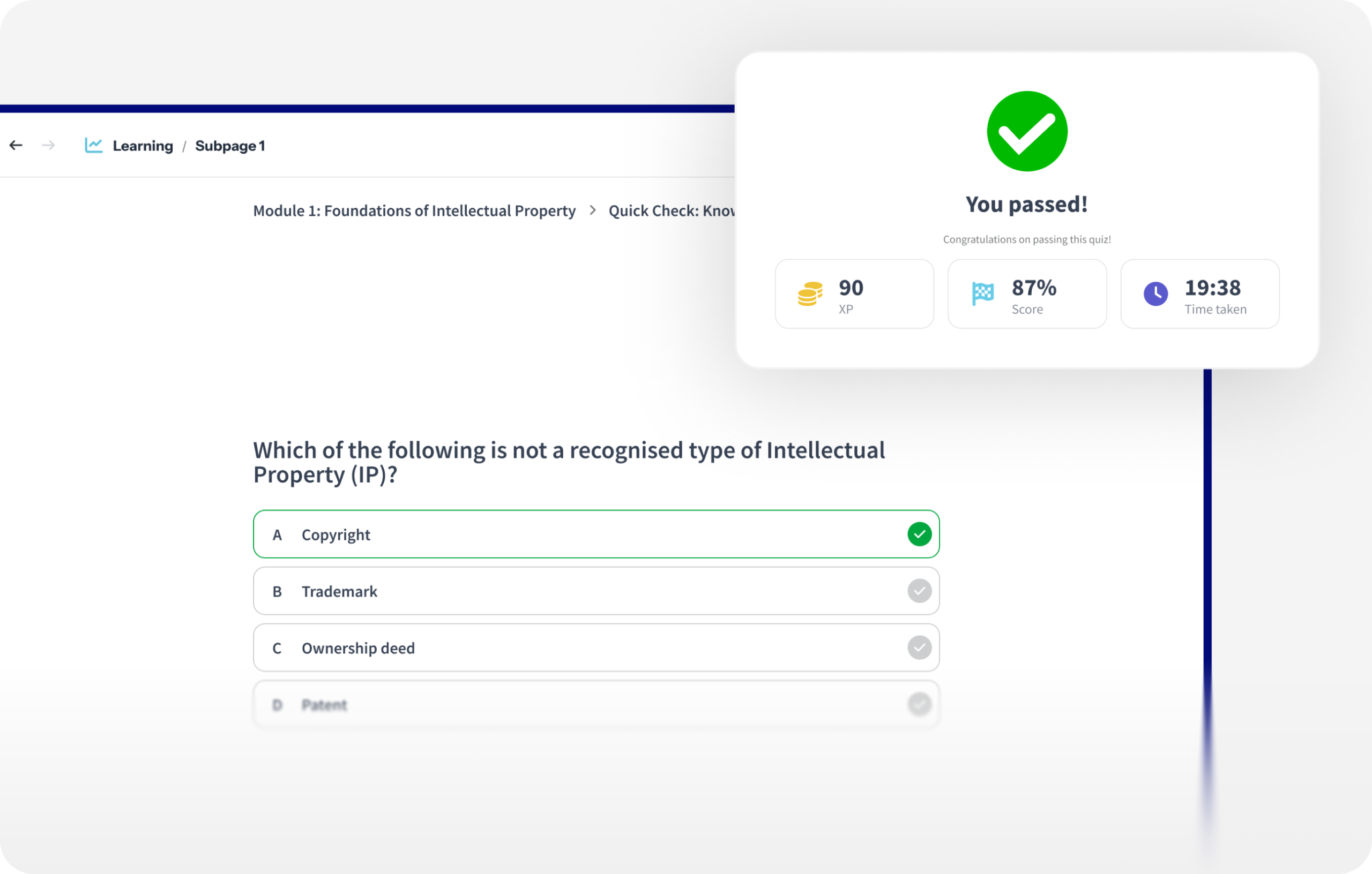 - Earn points for completing quizzes and assessments